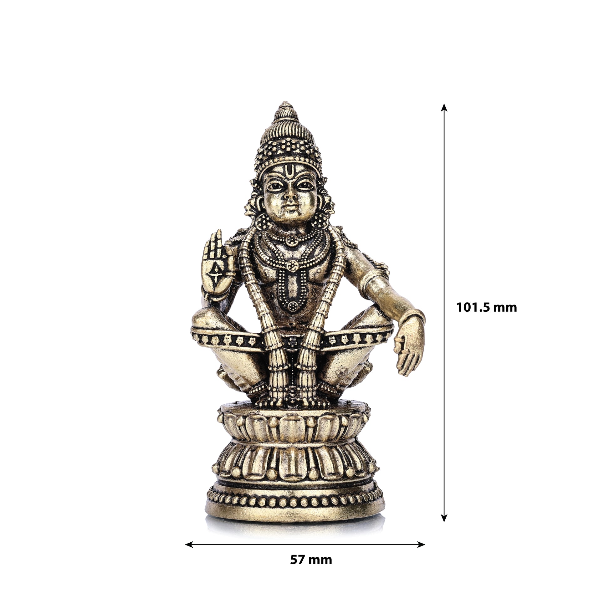 A finely sculpted brass idol of Lord Ayyappa Swamy in a traditional seated posture, symbolizing discipline, devotion, and spiritual strength. A revered presence for your altar or devotional space.