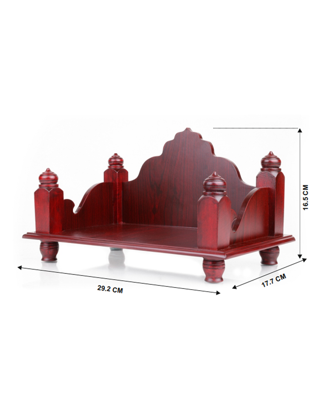 The Mandasana is intended for pooja and decorative purpose only. Please do not keep pets or heavy objects on it. This mandasana is made of wood. Do not expose it to Flame/burning objects.