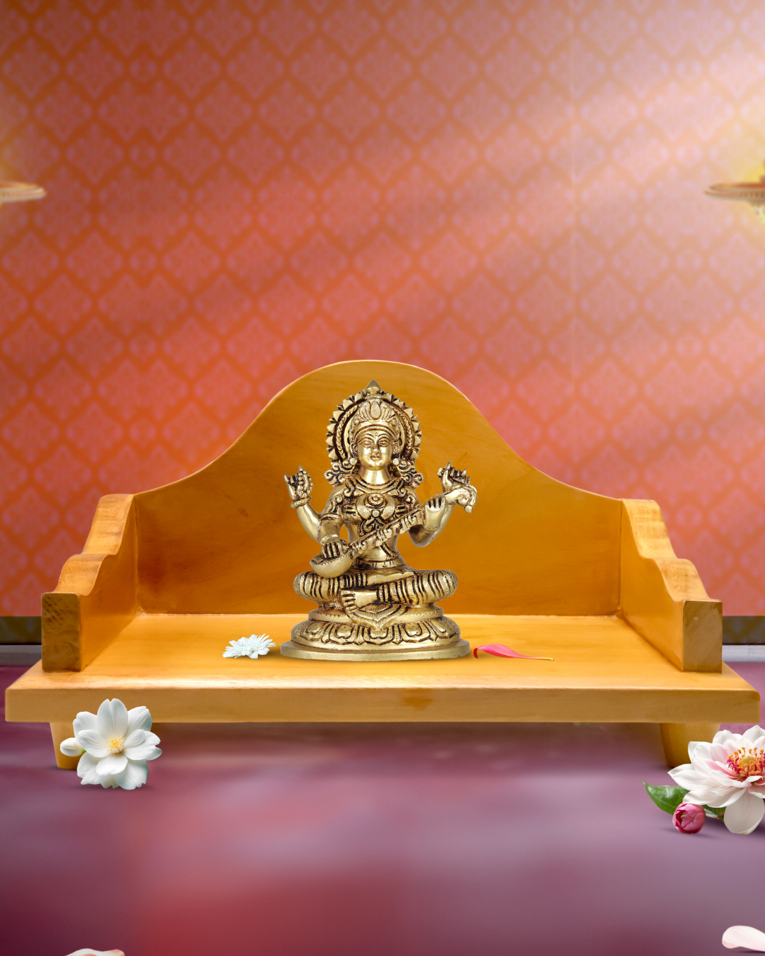 The Mandasana is intended for pooja and decorative purpose only. Please do not keep pets or heavy objects on it. This Mandasana is made of wood. Do not expose it to flame / burning objects.