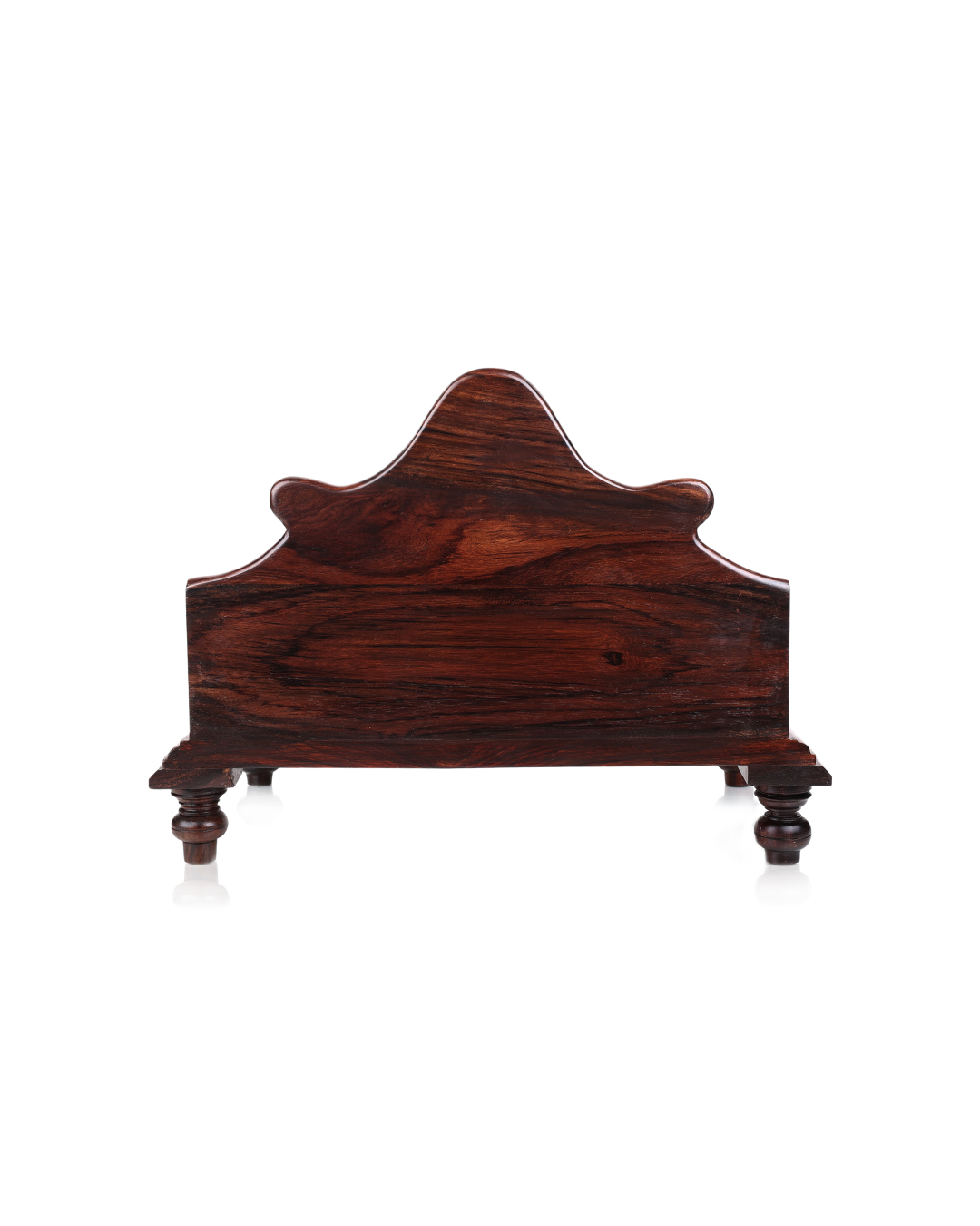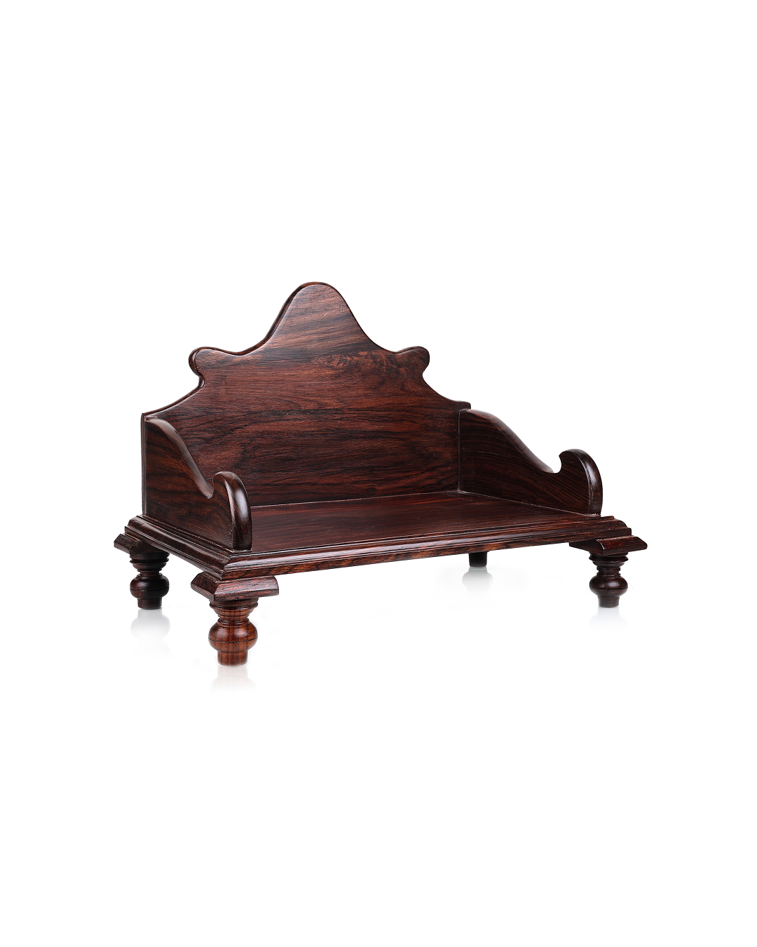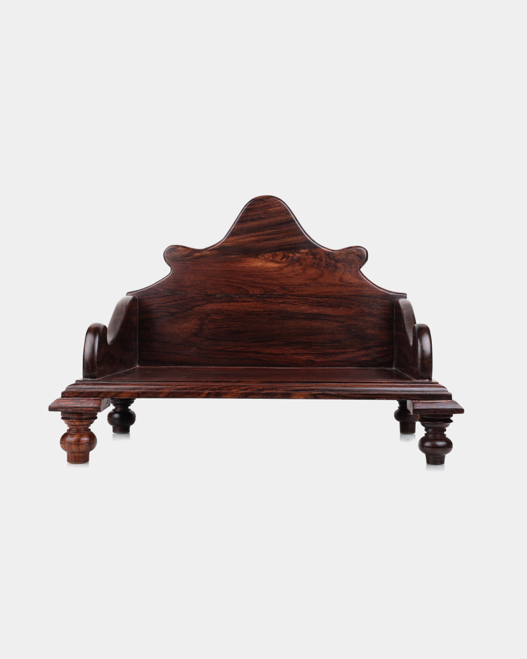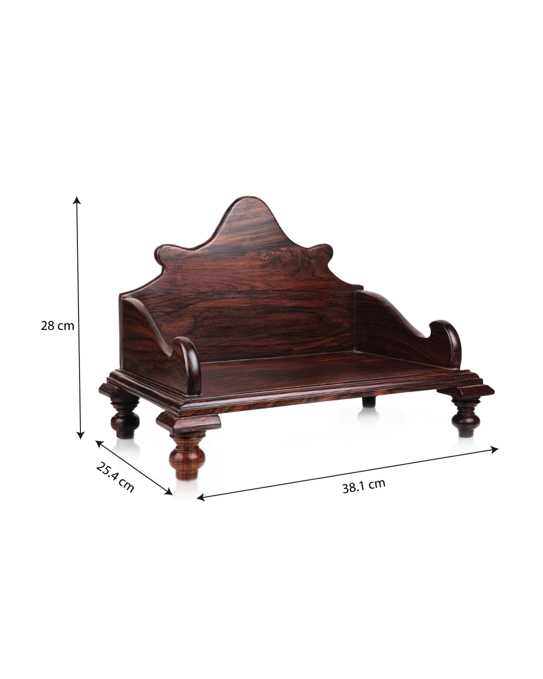 Elegantly handcrafted Puja Mantapa using 100% original premium quality Rosewood. We have kept the design simple to provide you with a convenient puja experience. It has a spacious seating supported by a protective back panel to place and worship your deity. Comes with a dark brown, glossy finish.