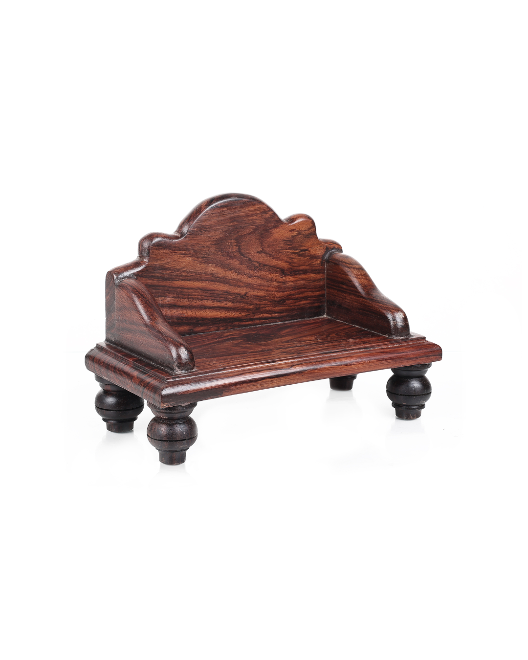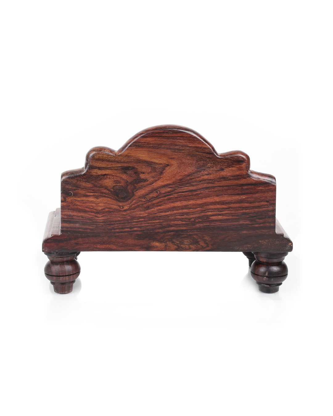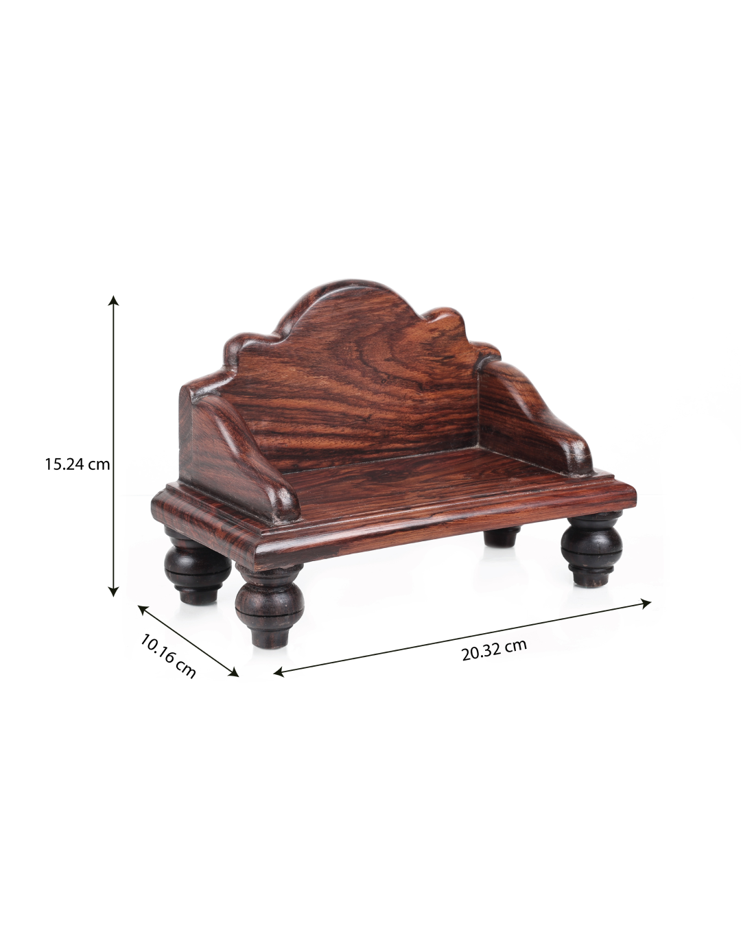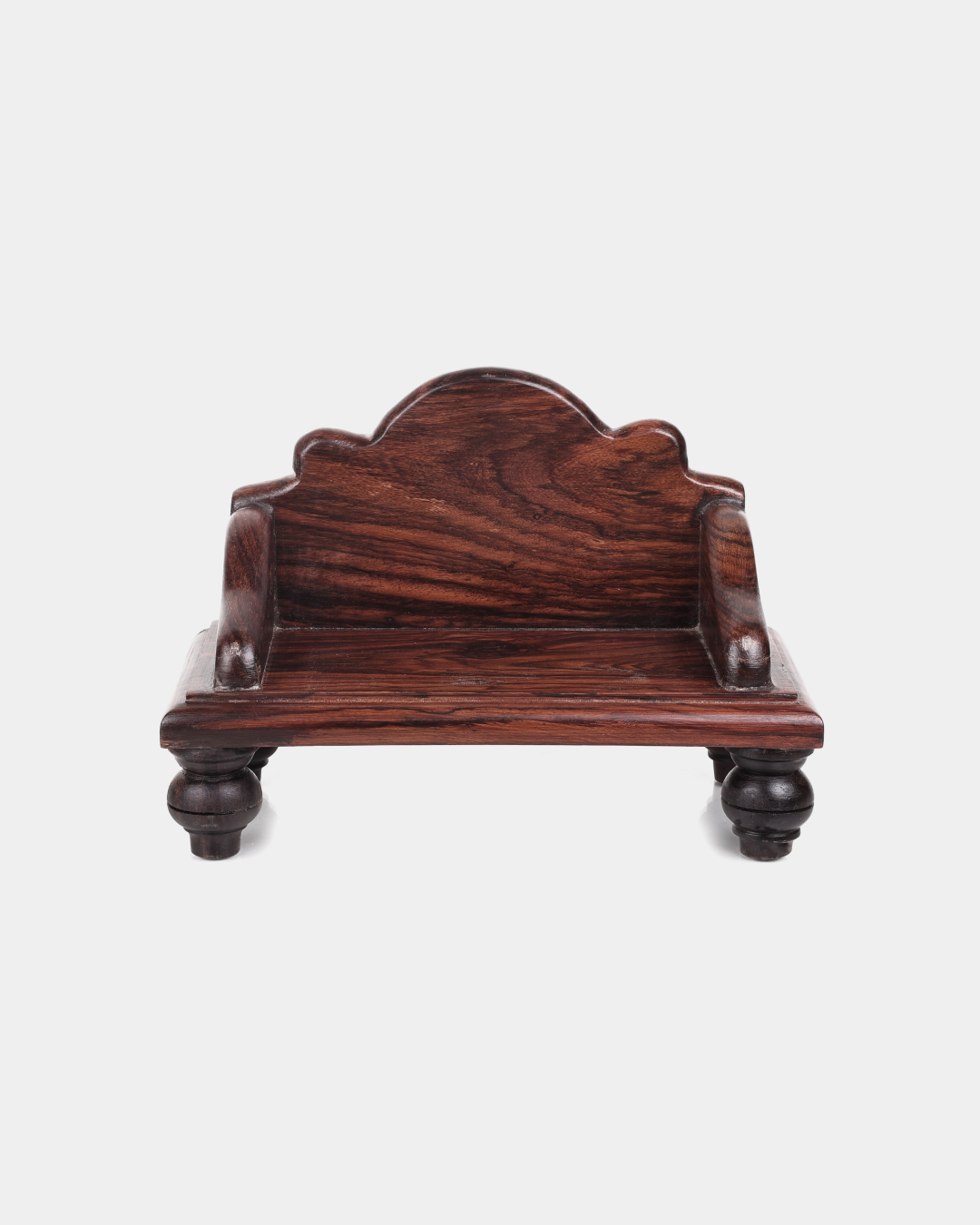 Elegantly handcrafted Puja Mantapa using 100% original premium quality Rosewood. We have kept the design simple to provide you with a convenient puja experience. It has a spacious seating supported by a protective back panel to place and worship your deity. Comes with a dark brown, glossy finish.