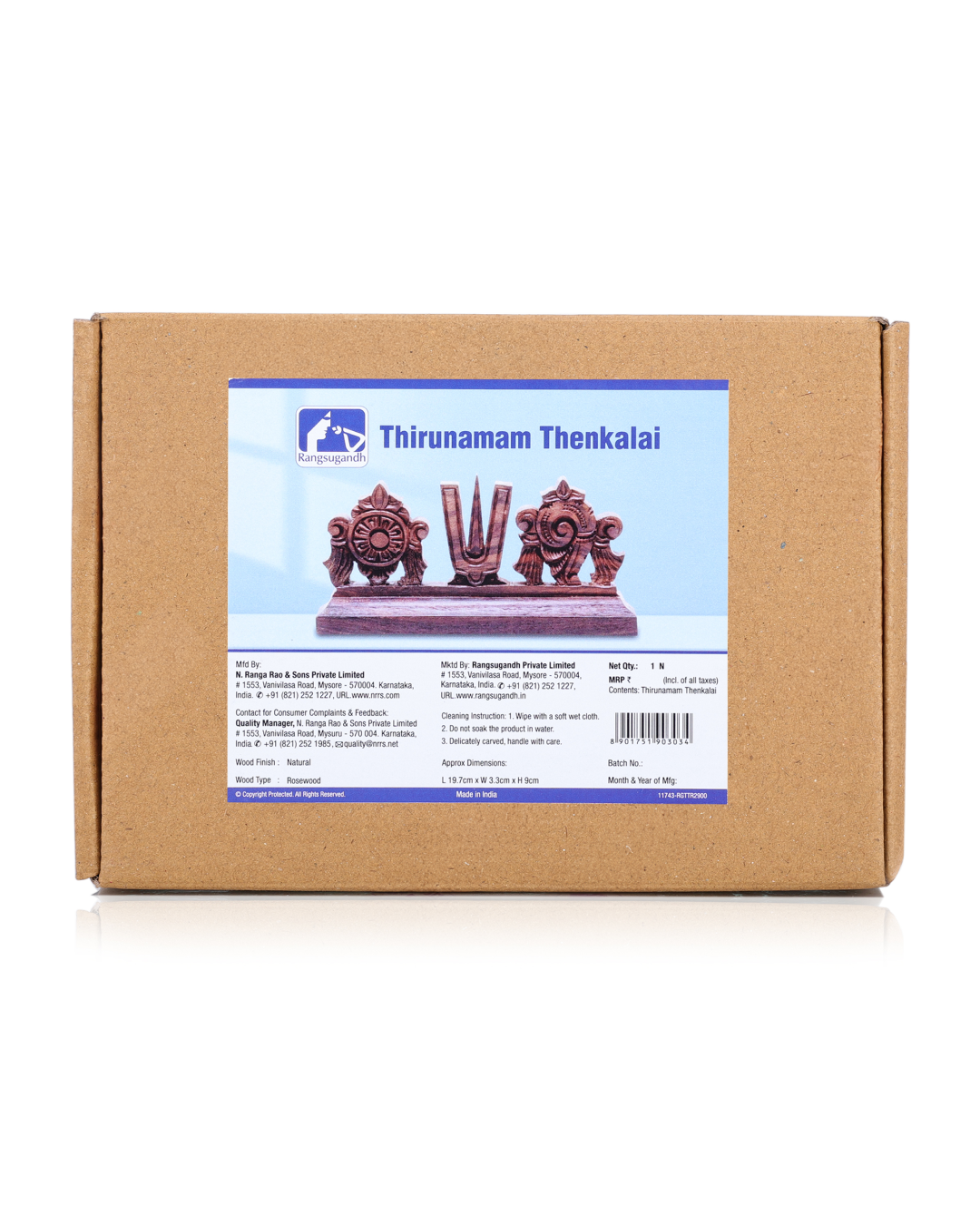• Meticulously crafted by traditional craftsmen on rosewood Thirunama is regarded as exceedingly lucky and serves as a of the Great Lord himself. Because it is thought to create a pleasant energy in the environment, devotees prefer to display the figurine of Thirunama with the Shankha Chakra in their houses, pooja rooms, above the pooja mantap, work desks, meditation spaces, etc. It emanates a calm and holy vibe. This intricately carved Thirunama is from the pujaroom and is made of rosewood. Devotees who wish to place this holy figurine in a sacred location in their homes have commissioned this wonderful item, which is meticulously carved and created with great care.